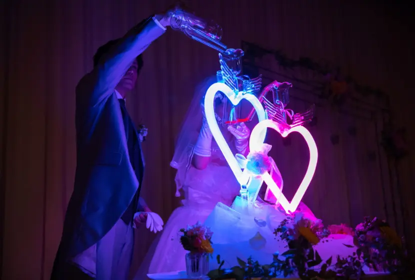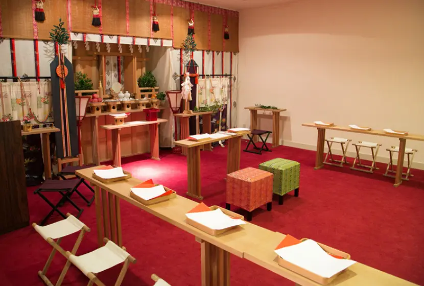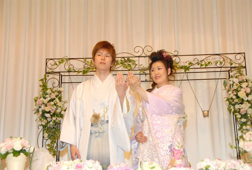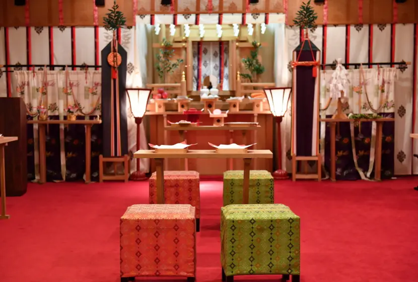荘重な雅楽の調べ中、おごそかな雰囲気につつまれて、おふたりの永遠の愛を誓う一生に一度の儀式。 いつまでも忘れることのない感動のセレモニーが今、始まります。
