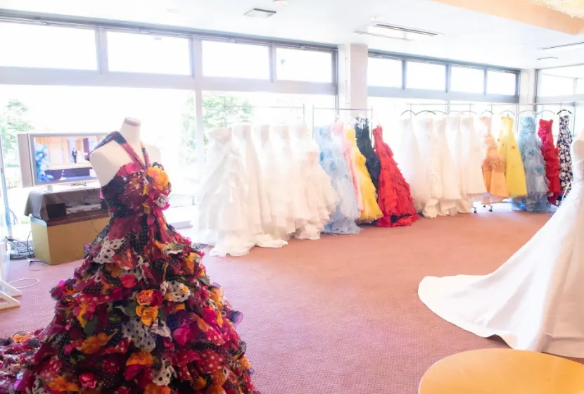 各種ドレスから打掛までご要望に添ったご衣装を、ブライダル協力店さんからお選びください。